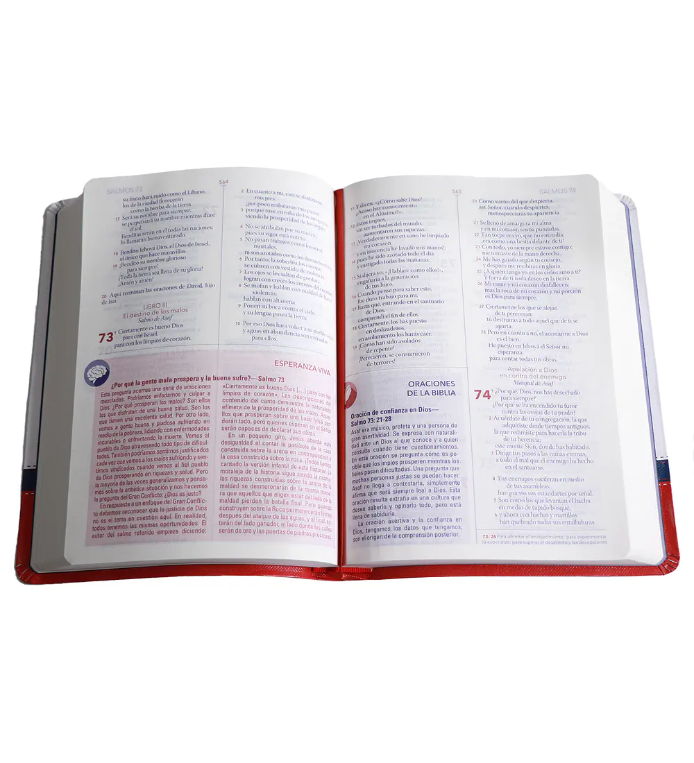 Más de 1000 versículos destacados en color que le ayudarán a afrontarlos problemas con ánimo y confianza. canto blanco, letra mediana.